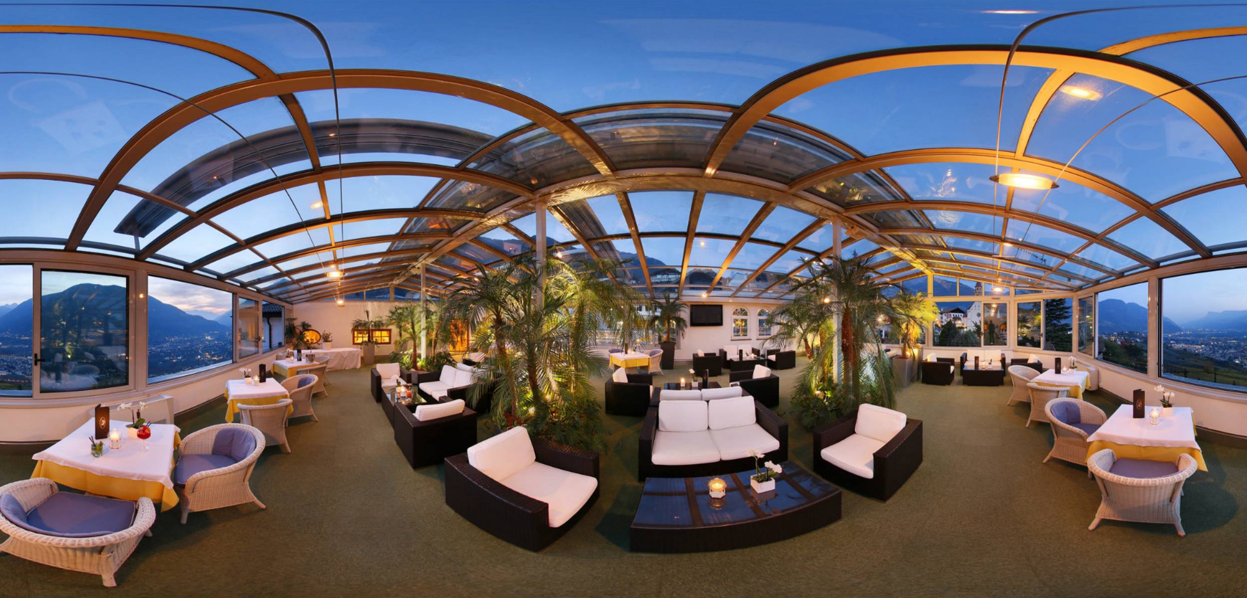 Paradiesisches 270°-Panorama auf Meran und die Berge